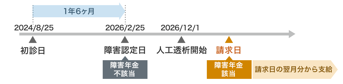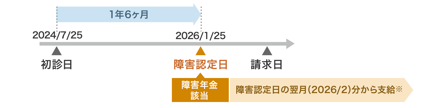 通常は「障害認定日による請求」で、障害認定日以降に障害年金を請求することをいいます。請求日からさかのぼって、障害認定日の翌月分から年金をもらうことができます。