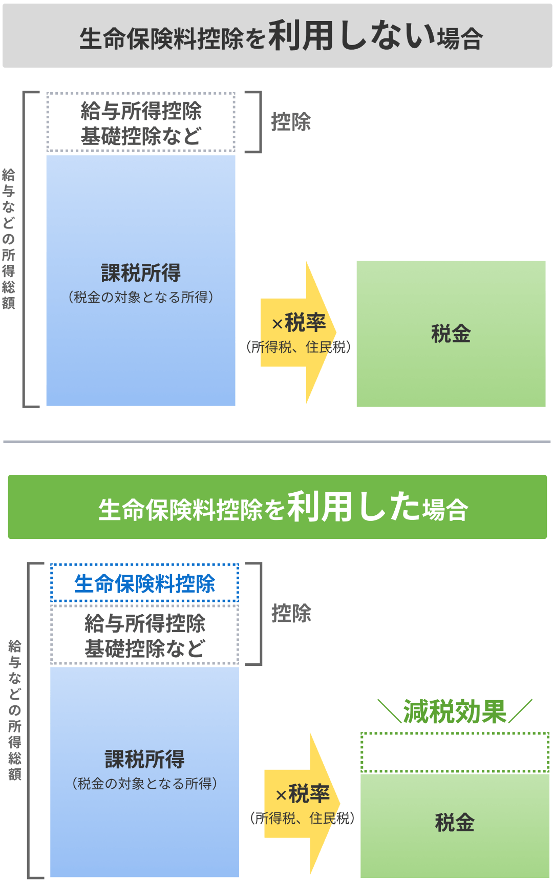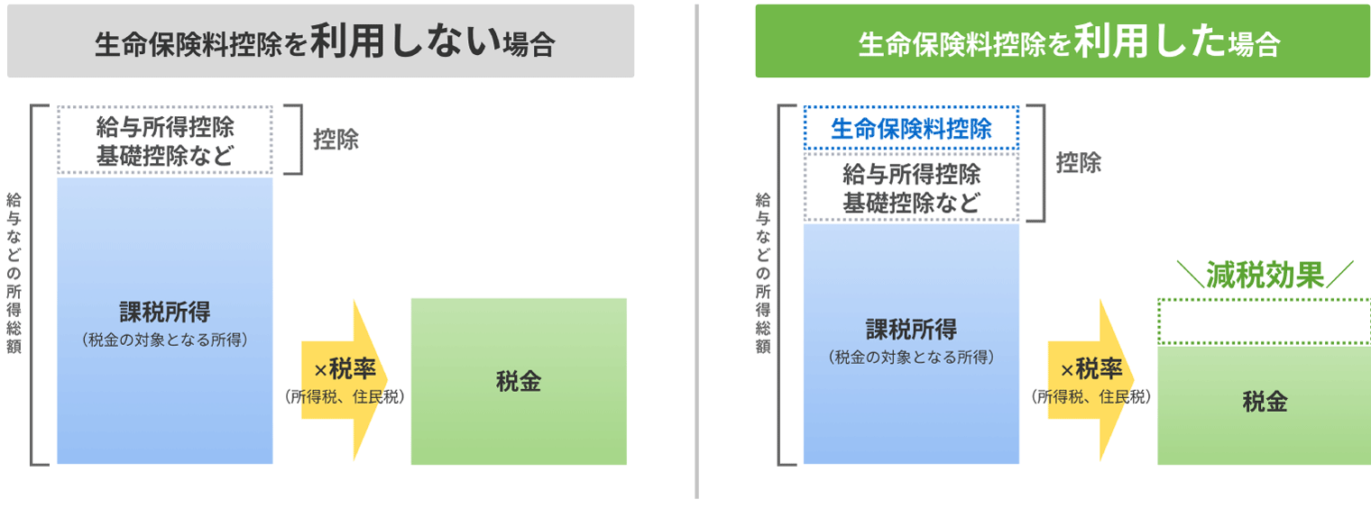 下の図1にあるように、生命保険料控除を利用することで、所得税や住民税の納付額を抑えられます。