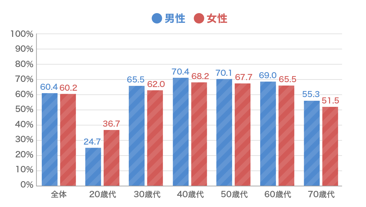 30歳代以降で加入率が上昇しているのは、結婚、子どもが産まれるなどのライフステージの変化が要因だと考えられます