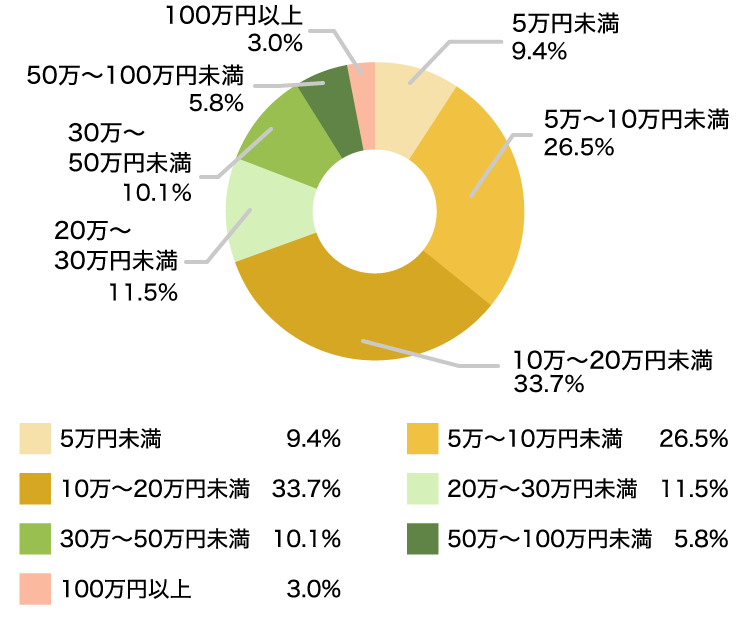 加えて、以下の図2で、入院時の自己負担額を見ると平均は19.8万円、負担額を「5万〜10万円未満」「10万〜20万円未満」と回答した方が、全体の約60%にのぼります。