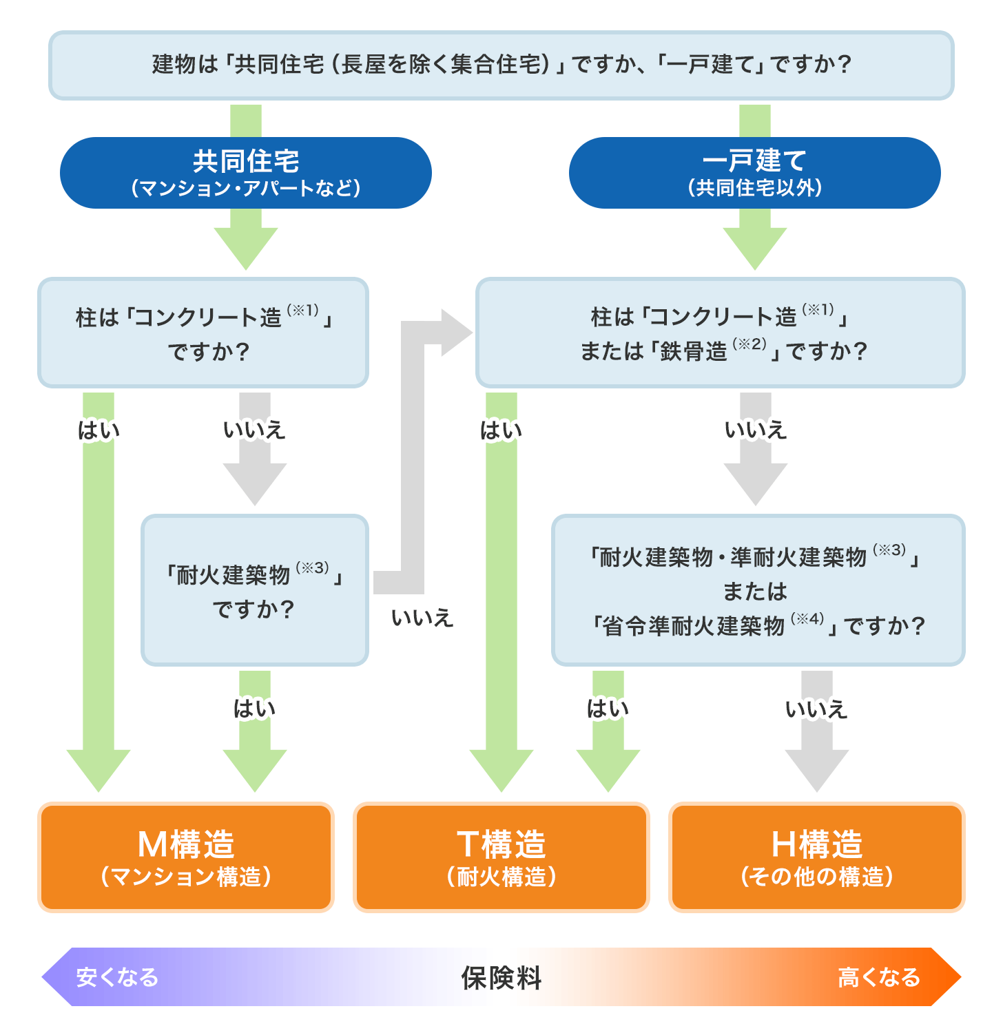 なぜなら、建物の主要構造部が木材なのか、鉄筋コンクリートなのか、鉄骨なのかで、火災や災害時の損害に差が生じるからです。