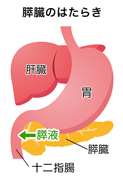 膵臓の機能が低下し、十分な消化酵素が十二指腸に流れず、消化がうまくいかなくなる病気です。