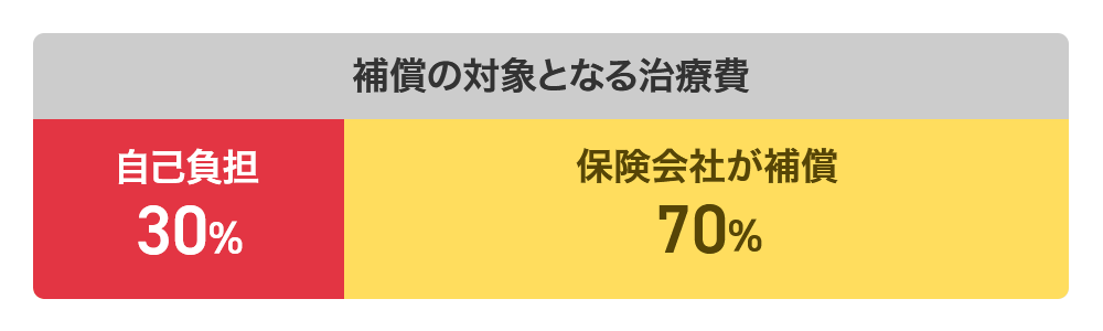 たとえば、70%補償のペット保険の場合、補償の対象となる治療費※のうち、約7割を保険金として受け取ることができるため、自己負担額は約3割となるとイメージするとわかりやすいでしょう。